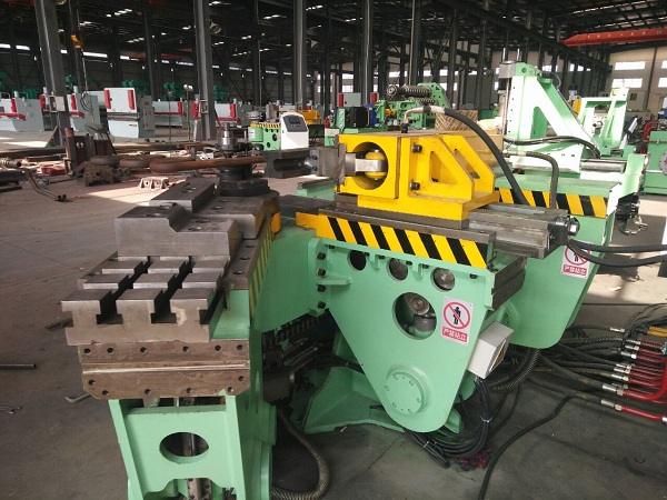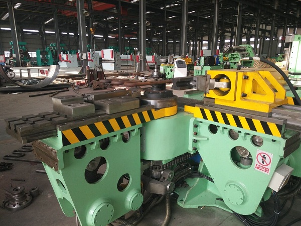 1、產(chǎn)生一定比例頂鐓力使管子截面產(chǎn)生附加壓應(yīng)力,以抵消管子(或型材)外壁拉應(yīng)力或部分拉應(yīng)力,防止管子(或型材)外壁受拉應(yīng)力而變薄或開裂,該頂鐓力的大小隨著管子(或型材)尺寸和材料性能而異,且隨著彎曲角度的變化而改變,故該機(jī)構(gòu)采用伺服比例結(jié)構(gòu)。 2、由于使用頂鐓彎曲工藝,頂鐓力遠(yuǎn)大于壓料道軌模(c)和防皺模(g)產(chǎn)生的摩擦阻力之和,故可忽略不計壓料道軌模(c)和防皺模(g)對彎管(曲)設(shè)備力矩的影響。 |