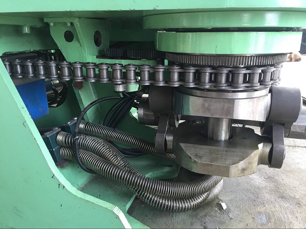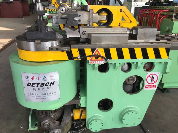 3、彎曲結(jié)束時,主模(a)旋轉(zhuǎn)停止時的角度就是所需要的彎曲角度。使用多球芯軸(f)和防皺模(g)保證管子(或型材)的橢圓度和內(nèi)壁不起皺。