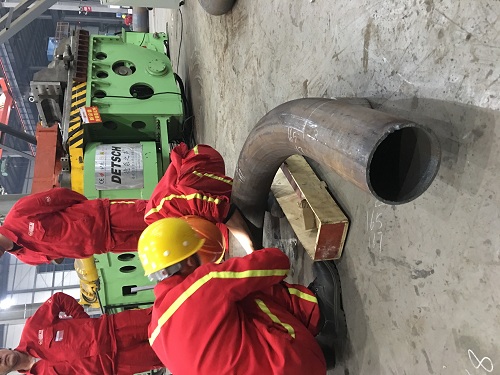 3、彎曲結(jié)束時(shí),主模(a)旋轉(zhuǎn)停止時(shí)的角度就是所需要的彎曲角度。使用多球芯軸(f)和防皺模(g)保證管子(或型材)的橢圓度和內(nèi)壁不起皺。