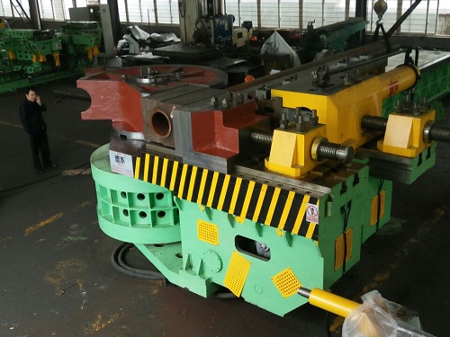 1、產生一定比例頂鐓力使管子截面產生附加壓應力,以抵消管子(或型材)外壁拉應力或部分拉應力,防止管子(或型材)外壁受拉應力而變薄或開裂,該頂鐓力的大小隨著管子(或型材)尺寸和材料性能而異,且隨著彎曲角度的變化而改變,故該機構采用伺服比例結構。 2、由于使用頂鐓彎曲工藝,頂鐓力遠大于壓料道軌模(c)和防皺模(g)產生的摩擦阻力之和,故可忽略不計壓料道軌模(c)和防皺模(g)對彎管(曲)設備力矩的影響。 |