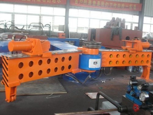 尾架裝置:尾架為機(jī)床附件,用戶可根據(jù)需要進(jìn)行訂貨,芯棒的進(jìn)退由油缸來實(shí)現(xiàn),彎曲到位后可通過油缸力抽出芯棒。
