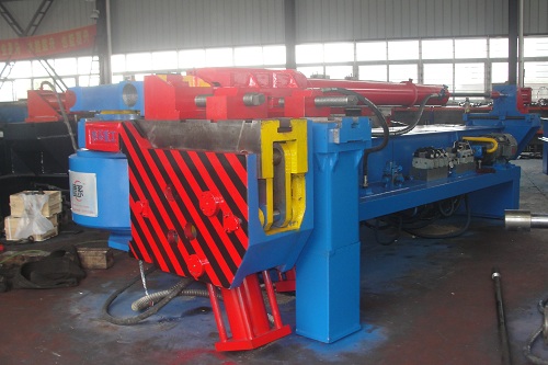 尾架裝置:尾架為機(jī)床附件,用戶可根據(jù)需要進(jìn)行訂貨,芯棒的進(jìn)退由油缸來(lái)實(shí)現(xiàn),彎曲到位后可通過(guò)油缸力抽出芯棒。