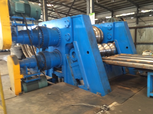 (5)考慮到卷制的應(yīng)力無法消除導(dǎo)致卷制后的成品兩端收縮,我公司在反復(fù)試驗(yàn)過程中得到很多寶貴經(jīng)驗(yàn),其中一項(xiàng)是在波紋板卷制成品之前給予一定量的反向變形,成品后自然矯正。