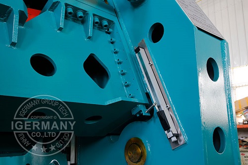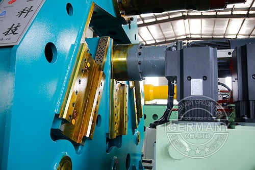 (8)意大利BLM電液伺服液壓集成系統(tǒng)+德國西門子(SIEMENS)PLC+德國海德漢(HEIDENHAIN)光柵尺(定位精度±0.1mm)控制下輥兩側(cè)油缸位移,實現(xiàn)機床高定位精度和高位移精度的閉環(huán)控制。