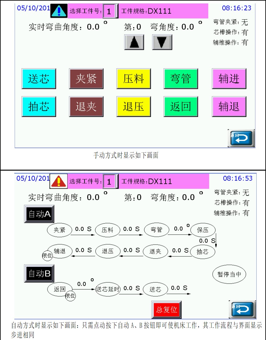 ● 小型設(shè)備可一次完成夾緊、壓料、送芯、彎管(輔推進(jìn))、抽芯、松開、退壓、復(fù)位,整個(gè)工藝流程。