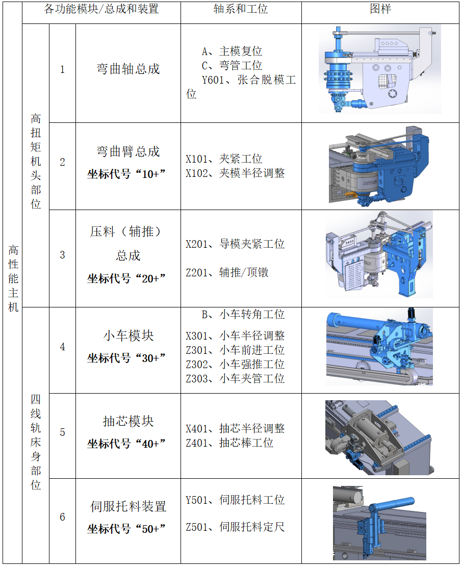 6.1.3.2.【特殊選項(xiàng)】預(yù)留輔推上下模塊多用于汽車排氣行業(yè)相同管徑半徑的多模連續(xù)作業(yè)。