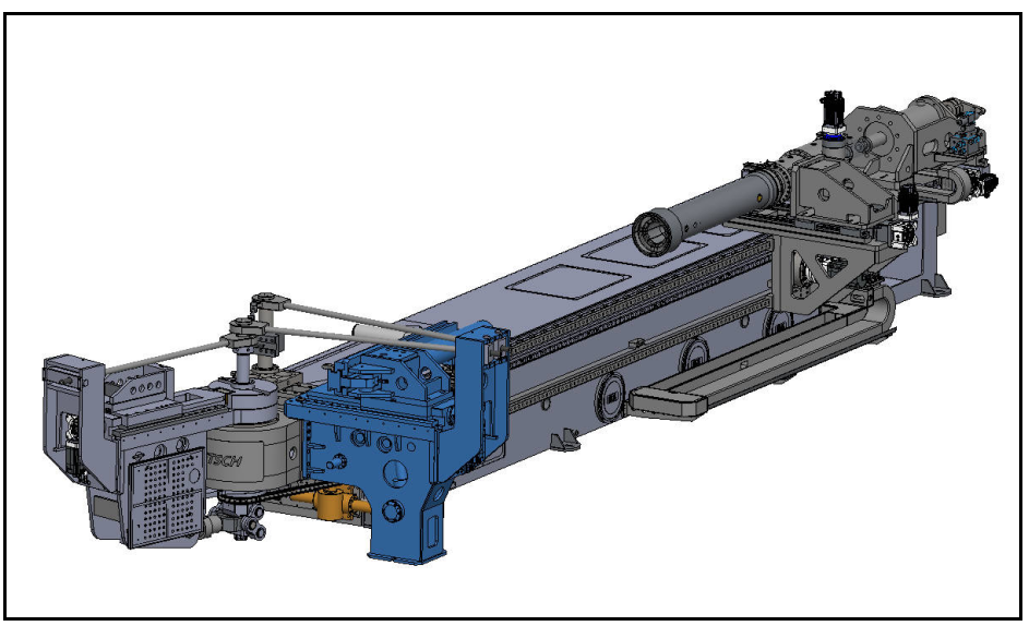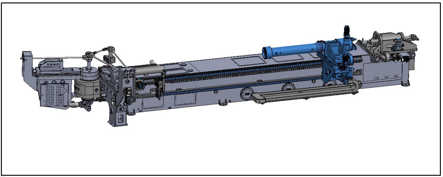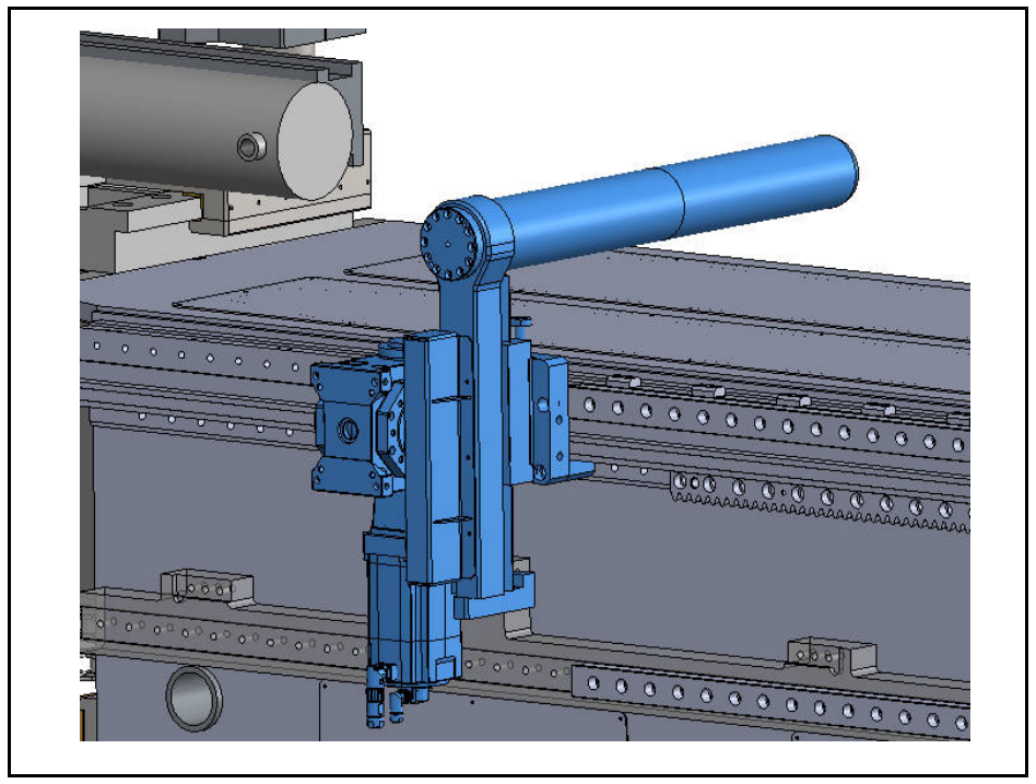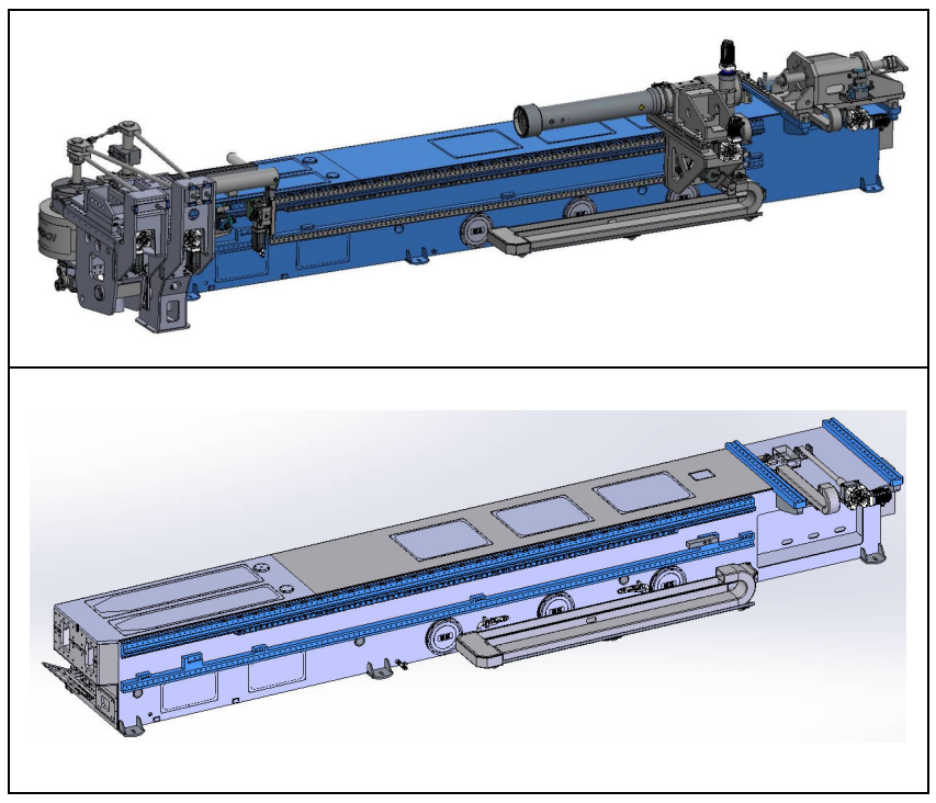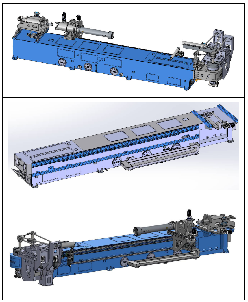 7.2.1.修長的炮筒伸出便于小車模塊伸入機(jī)頭區(qū)域(模具中心附近處)彎曲作業(yè),極大有效的減少了對管材末段長度的要求,避免了管材浪費(fèi)。