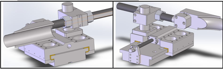 5.3.3. 用于控制調(diào)節(jié)和定位半徑調(diào)整工位的研磨級T型絲桿,具有穩(wěn)定的自鎖特性。該絲桿巧妙的設(shè)計(jì)安裝在平推式夾管工位的內(nèi)部,避免了夾管作業(yè)需絲桿旋轉(zhuǎn)輸出動載荷而產(chǎn)生的磨損。