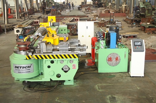 3、彎曲結(jié)束時,主模(a)旋轉(zhuǎn)停止時的角度就是所需要的彎曲角度。使用多球芯軸(f)和防皺模(g)保證管子(或型材)的橢圓度和內(nèi)壁不起皺。