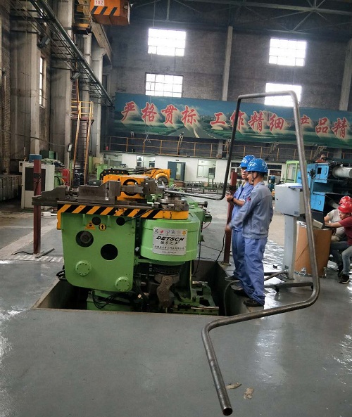 3、彎曲結(jié)束時(shí),主模(a)旋轉(zhuǎn)停止時(shí)的角度就是所需要的彎曲角度。使用多球芯軸(f)和防皺模(g)保證管子(或型材)的橢圓度和內(nèi)壁不起皺。