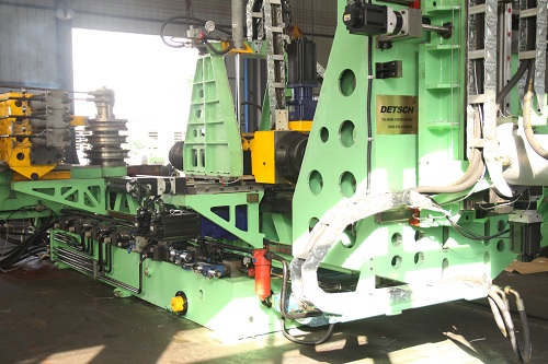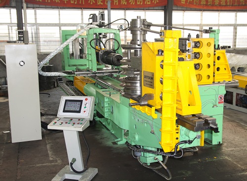 3、彎曲結(jié)束時(shí),主模(a)旋轉(zhuǎn)停止時(shí)的角度就是所需要的彎曲角度。使用多球芯軸(f)和防皺模(g)保證管子(或型材)的橢圓度和內(nèi)壁不起皺。