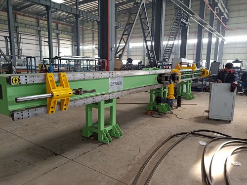 3、彎曲結(jié)束時(shí),主模(a)旋轉(zhuǎn)停止時(shí)的角度就是所需要的彎曲角度。使用多球芯軸(f)和防皺模(g)保證管子(或型材)的橢圓度和內(nèi)壁不起皺。