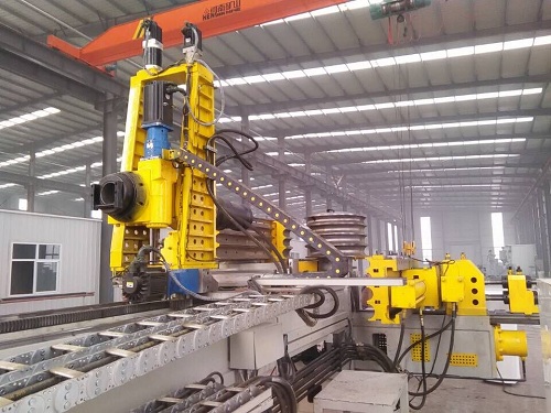 3、彎曲結(jié)束時(shí),主模(a)旋轉(zhuǎn)停止時(shí)的角度就是所需要的彎曲角度。使用多球芯軸(f)和防皺模(g)保證管子(或型材)的橢圓度和內(nèi)壁不起皺。